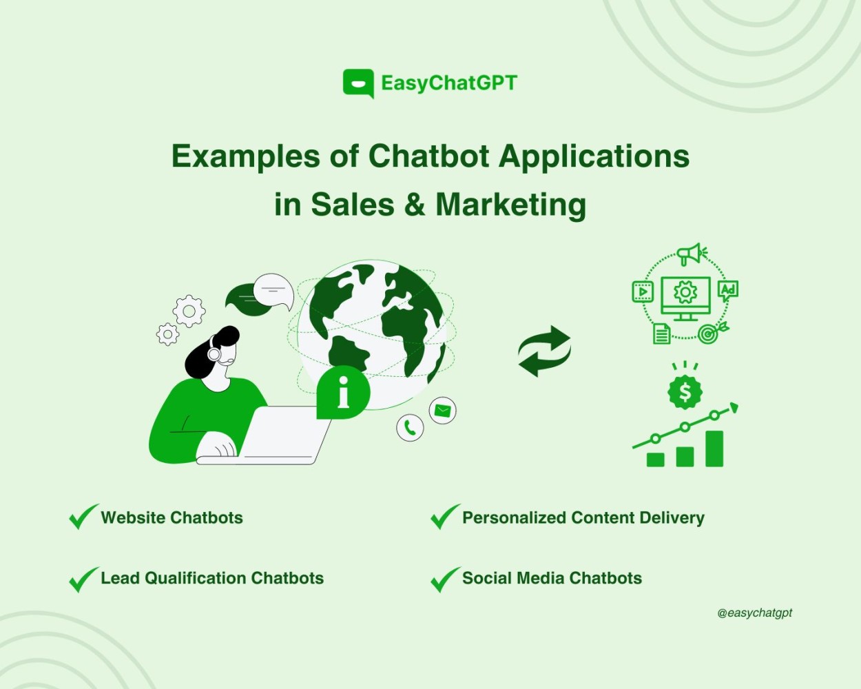- Lead Qualification Chatbots: Qualify leads by asking relevant questions and routing them to the appropriate sales representative.